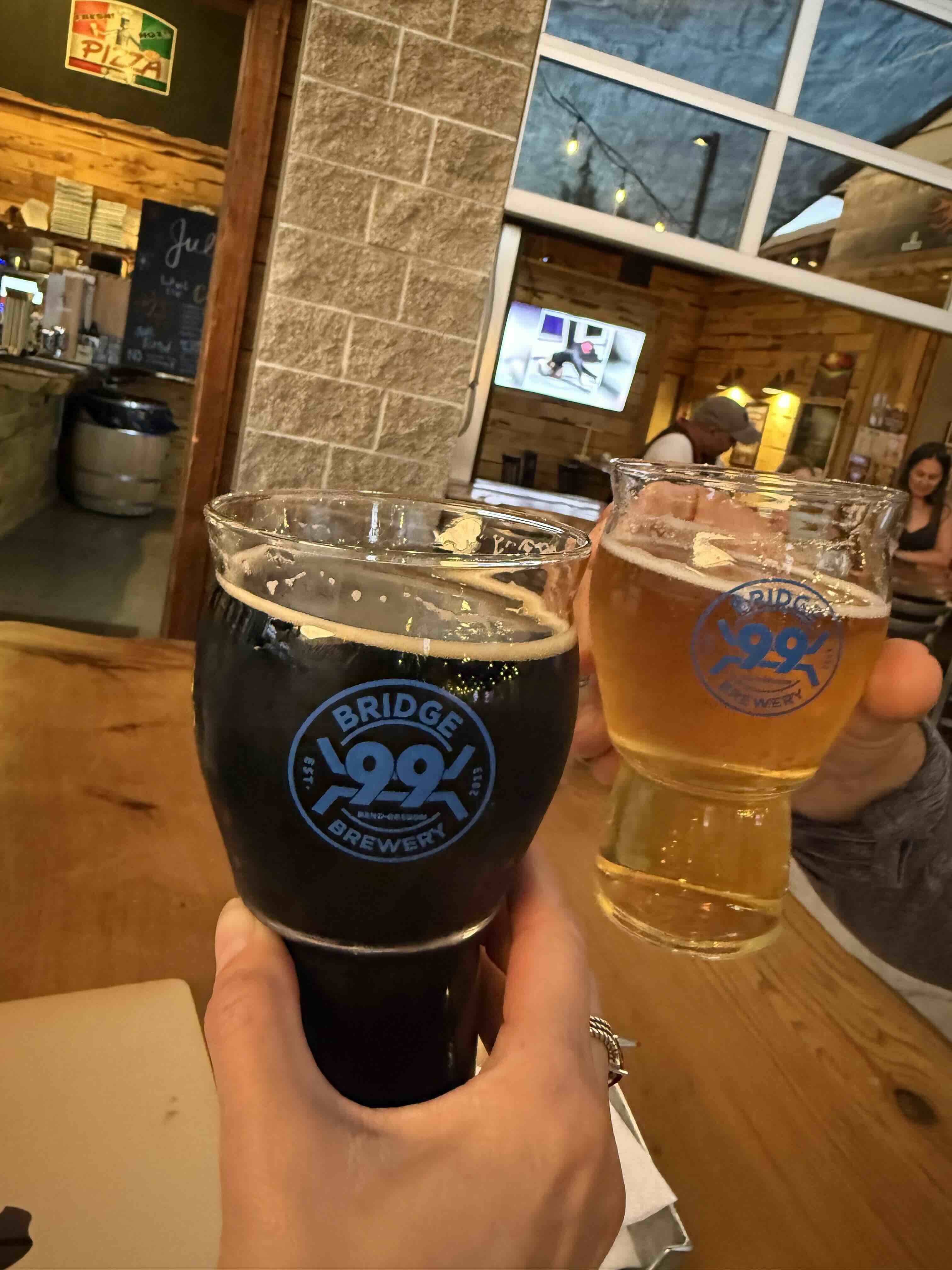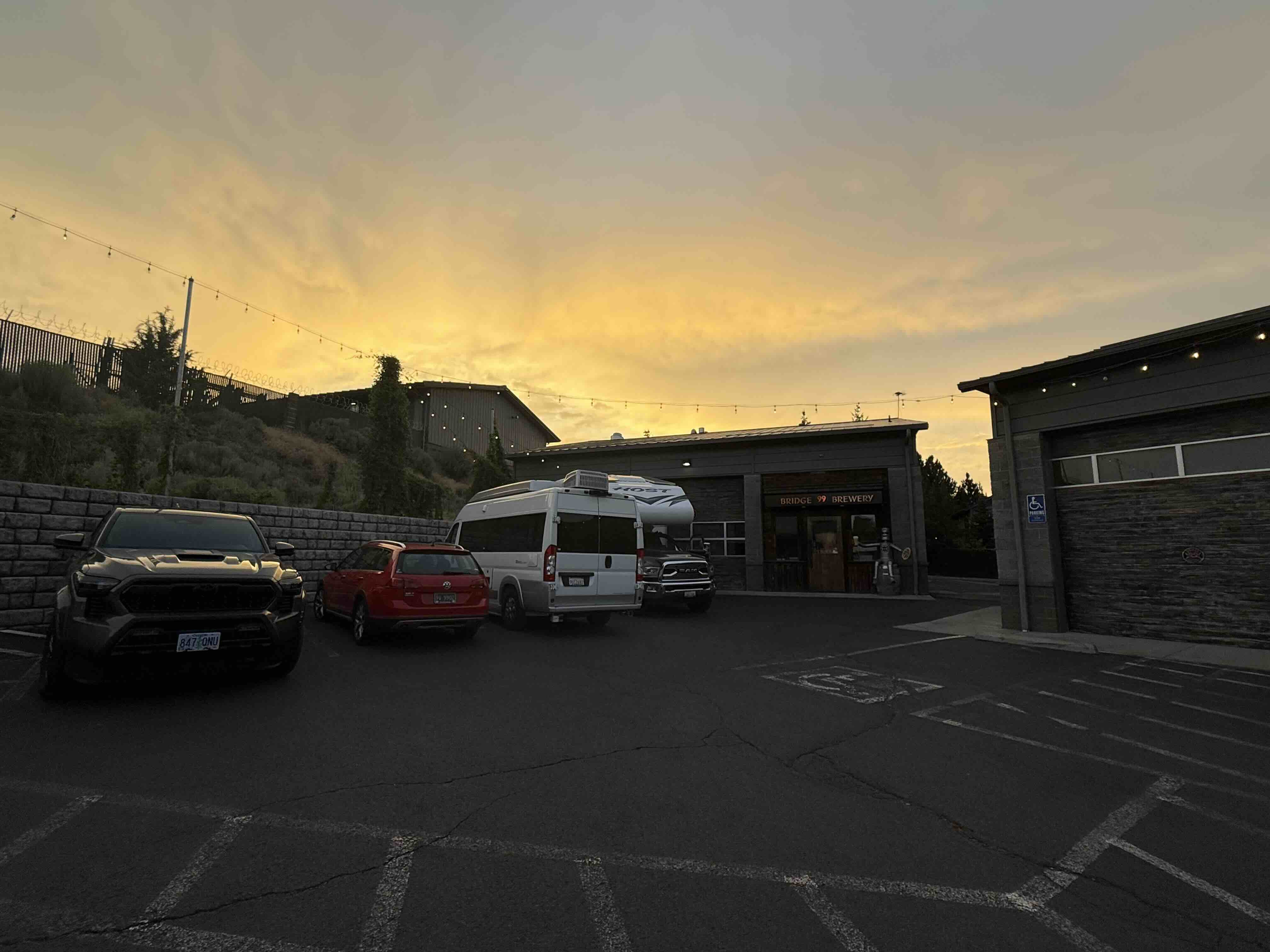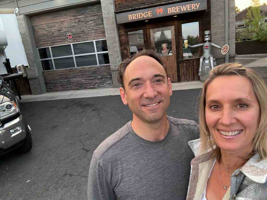 Our final destination was Bend, Oregon, where we enjoyed dinner and a beer 🍻 at Bridge 99 Brewery. And then, thanks to Harvest Hosts, we parked the van for the evening and had 20 steps from bar to bed!