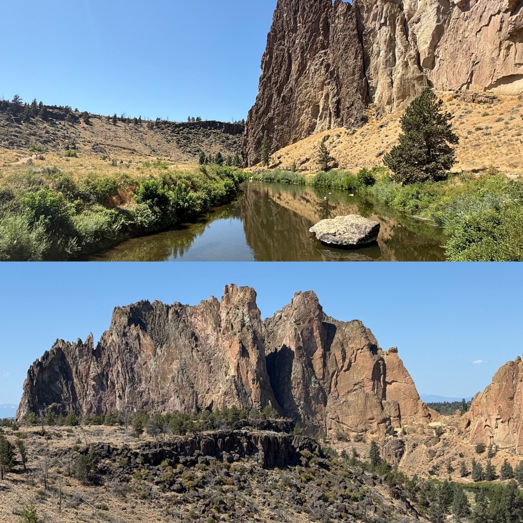 Once we were caffeinated and rolling, we tapped ChatGPT… aka Chatty … for help choosing a few spots along the way. And Chatty did not disappoint. One of the gems was Smith Rock State Park and it was the best! If you haven’t been – add it to your list! 🧗