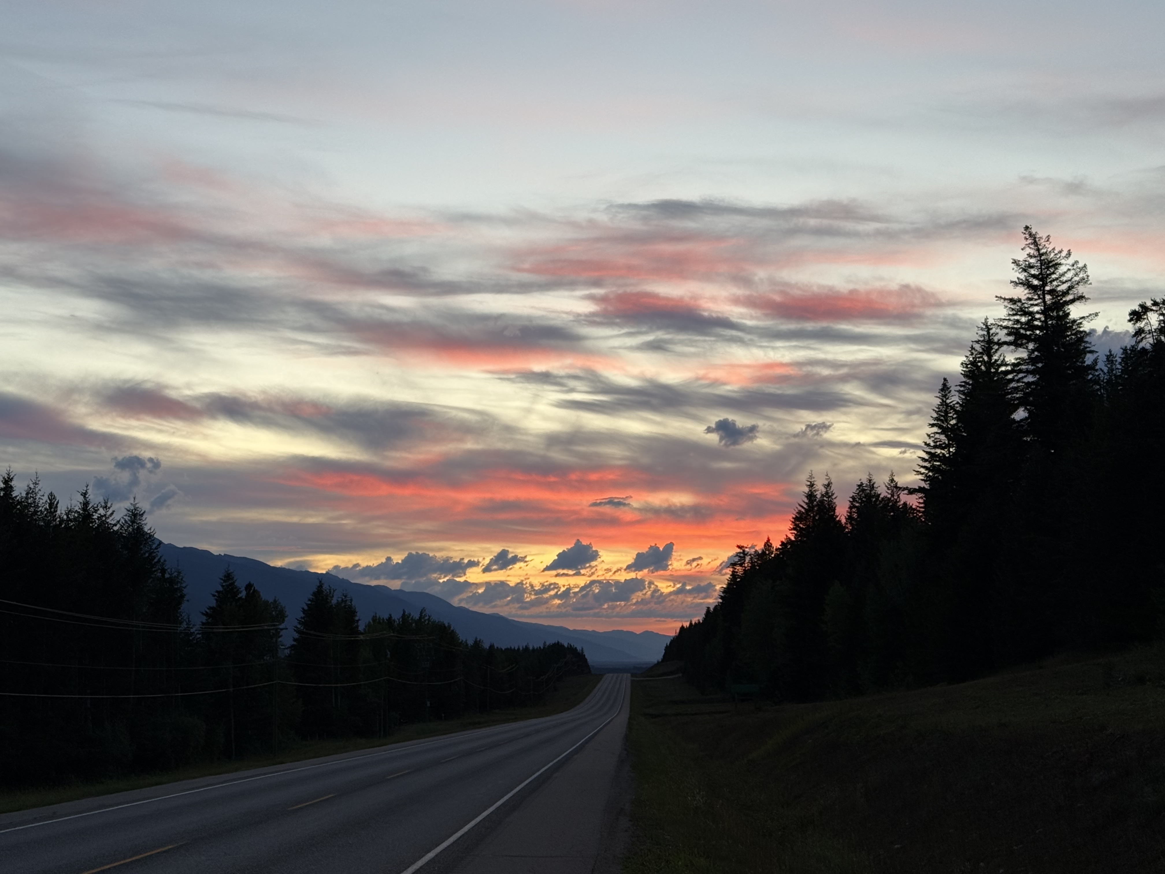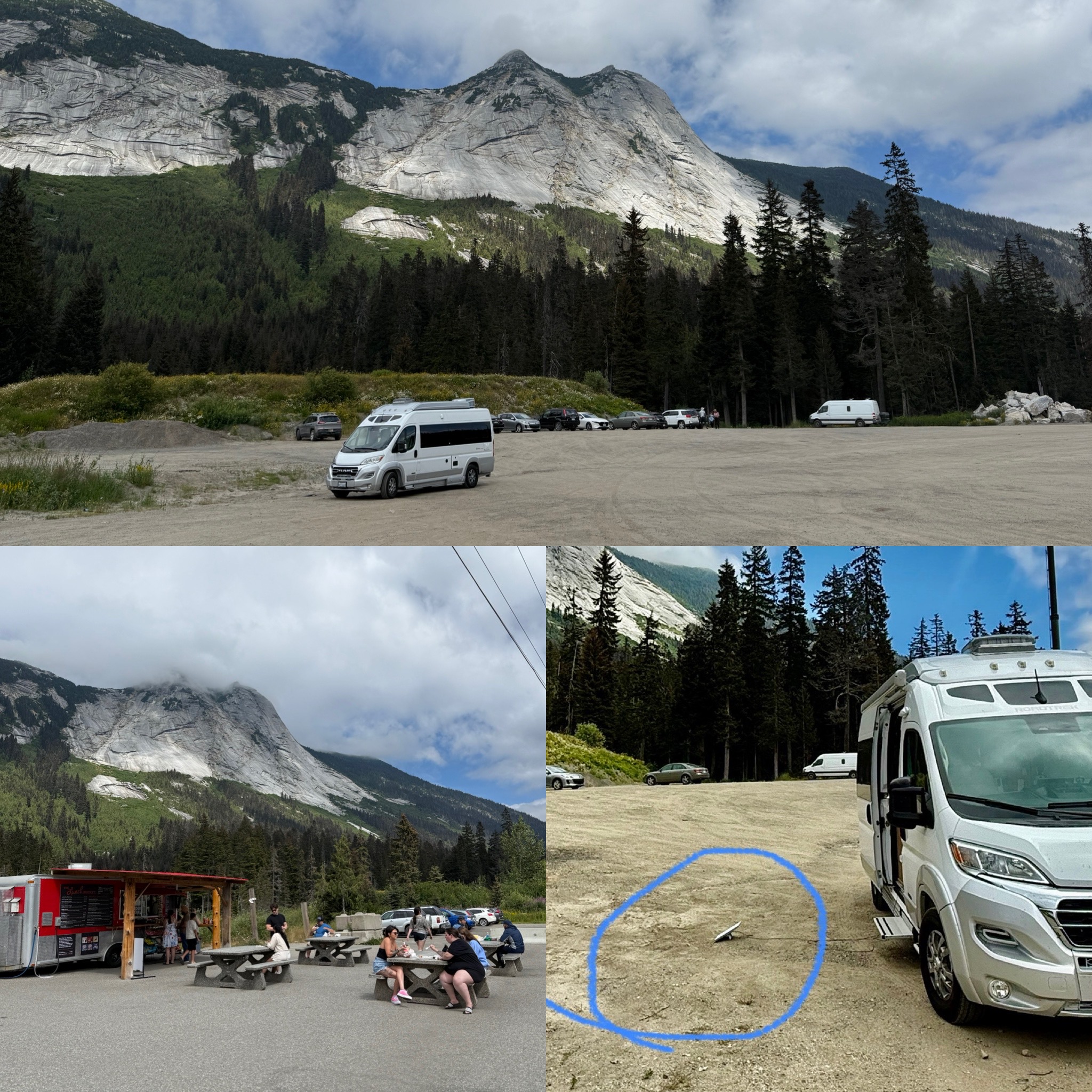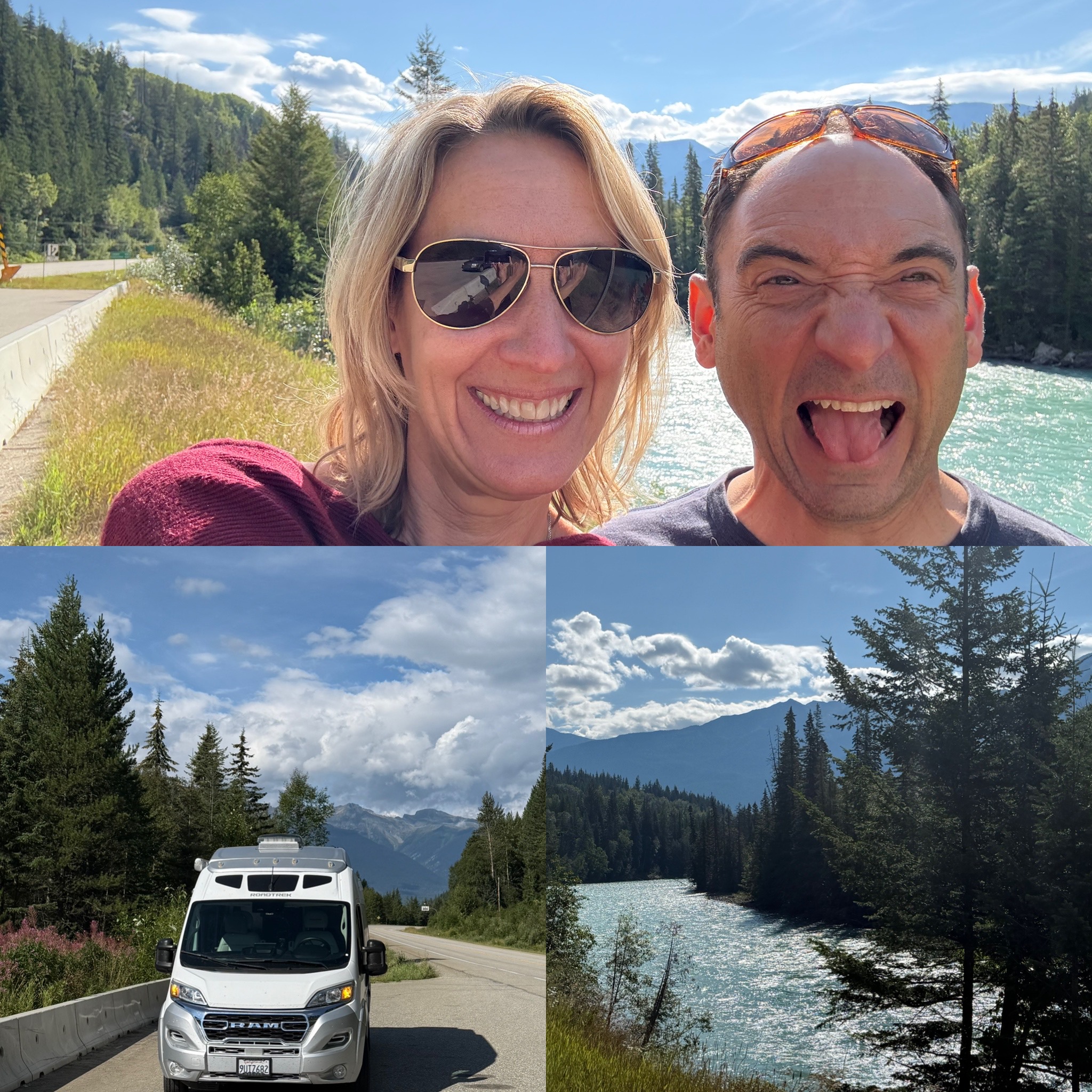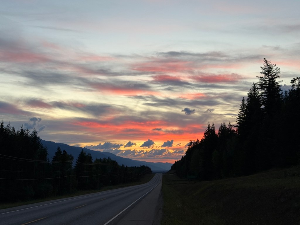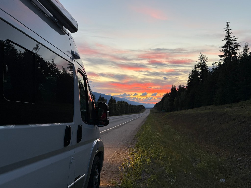 After we crossed into B.C., we joined Highway 5, also known as the Yellowhead Highway, and needed to find a spot for Scott to take a call. He wasn’t about to risk being on video in the back of a moving van again (lesson learned from Day 1). We pulled into a perfect roadside rest area … seemingly in the middle of nowhere …… and within minutes, I had Starlink up and running with excellent Wi-Fi. The universe provides.