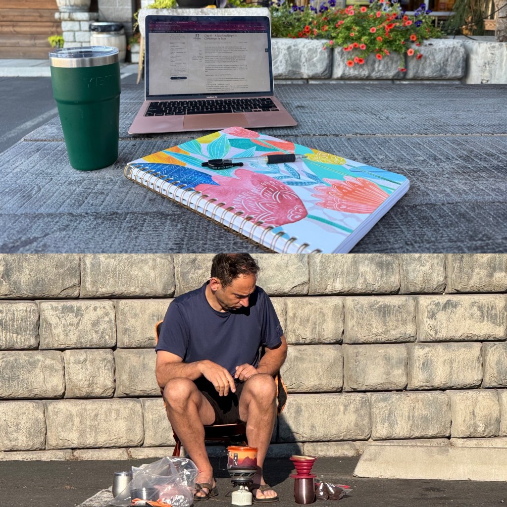 When we finally did rise, Scott got out the camp coffee gear and did a proper pour-over for both of us. I sat nearby, journaling in the morning light. That practice – my morning journaling – has been with me for years, on and off, but it really re-rooted itself back in 2018 after a weekend at 1440 Multiversity with my best friend, Linda. We attended a session with Julia Cameron, the author of The Artist’s Way, a book I had first read 25 years ago. She’s big on morning pages … just writing, stream-of-consciousness, for 30 minutes. Linda has done it every single day since. Rain or shine, hungover or while traveling. Me? I’ve been less consistent, but for the past few weeks, as part of my 5am routine reset, I’ve been back at it! ✍️
